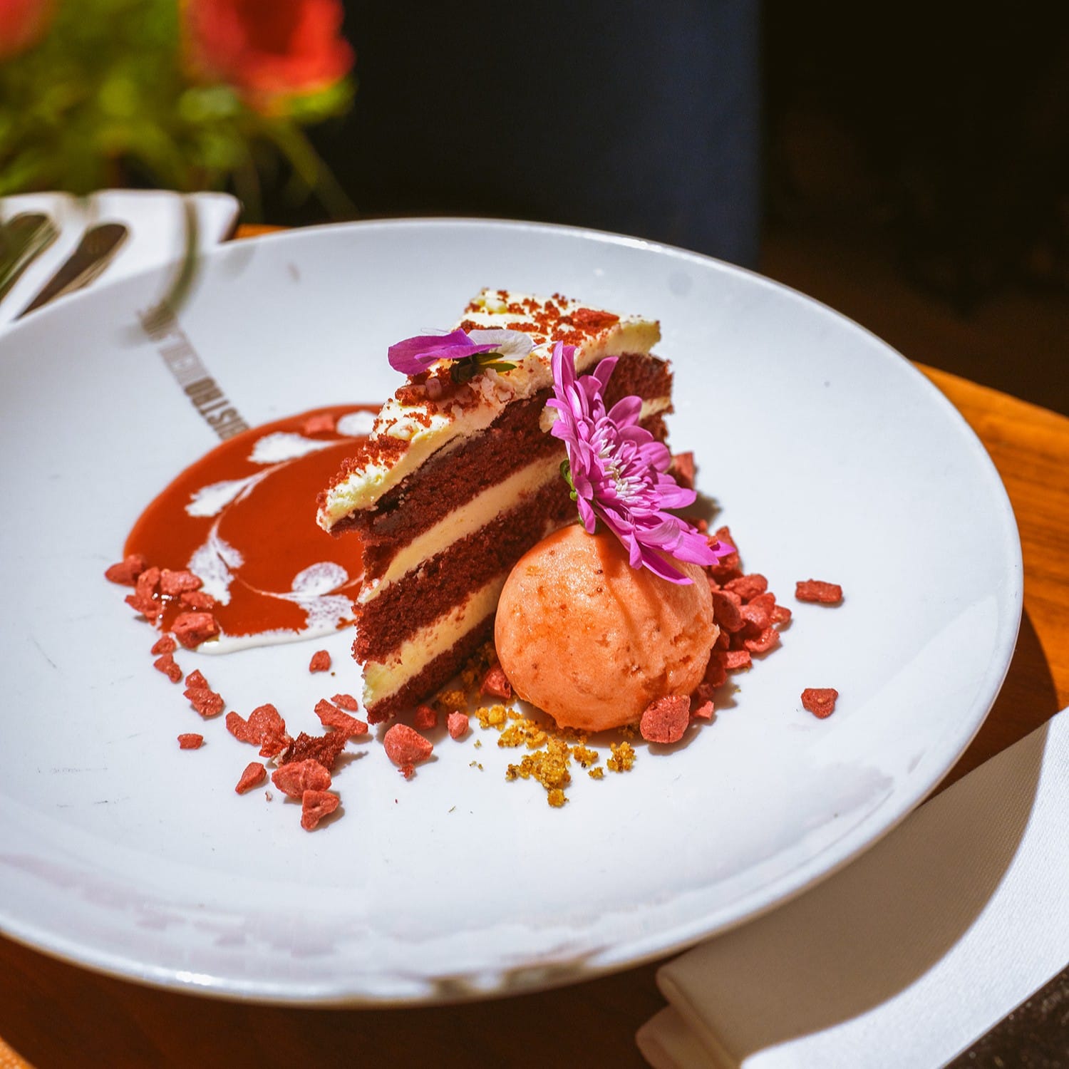 The Valentine’s brunch consists of four courses served as shared dining, with the menu displayed alongside. We begin on a festive note with a glass of champagne, followed by the first three courses accompanied by a glass of prosecco or a mimosa (non-alcoholic options available). The brunch concludes with a sweet finale, served with coffee or tea.